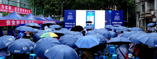 南寧市民冒雨參加廣西2021年國家網(wǎng)絡(luò)安全活動(dòng)周現(xiàn)場活動(dòng)。
