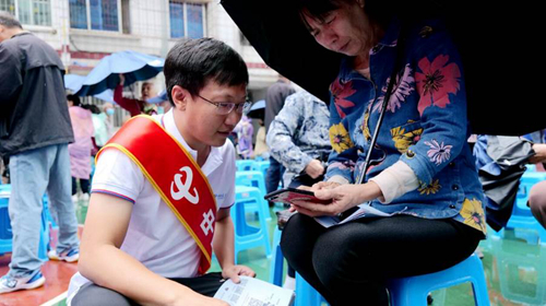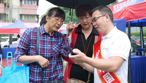 電信員工向群眾宣傳防詐反詐知識(shí)。