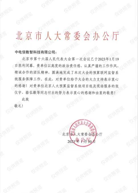 作為北京人大預(yù)算聯(lián)網(wǎng)監(jiān)督系統(tǒng)二期的總集單位,電信數(shù)智將始終秉承“以客戶為中心”理念,立足“人大視角、法治思維”,以中國(guó)電信領(lǐng)先的技術(shù)能力、管理能力、服務(wù)能力,運(yùn)用大數(shù)據(jù)和現(xiàn)代化信息技術(shù),持續(xù)推進(jìn)聯(lián)網(wǎng)監(jiān)督系統(tǒng)迭代升級(jí),豐富系統(tǒng)功能,為代表履職注入智慧力量,為推動(dòng)新時(shí)代首都發(fā)展作出更大貢獻(xiàn)。