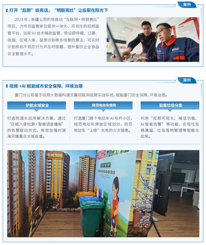 中國電信積極構(gòu)建視聯(lián)網(wǎng)“一張網(wǎng)、一朵云、一個平臺”能力底座,打造平安慧眼、智慧城管、衛(wèi)健監(jiān)管、智慧園區(qū)、應(yīng)急環(huán)保等多種行業(yè)應(yīng)用,提供行業(yè)領(lǐng)先的視聯(lián)網(wǎng)產(chǎn)品和服務(wù),目前接入設(shè)備數(shù)超 6,000 萬臺。成立天翼視聯(lián)科技有限公司,加快構(gòu)建全國統(tǒng)一的新型視頻服務(wù)基礎(chǔ)設(shè)施,打造服務(wù)經(jīng)濟(jì)社會發(fā)展的國家級數(shù)字化平臺。