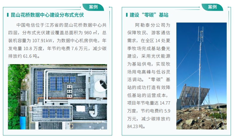 中國電信以“1248”雙碳行動計劃為指引,推進綠色云網、綠色用能、綠色辦公、循環(huán)利用、綠色科創(chuàng)和綠色管理等領域工作,不斷挖掘自身降碳潛能。