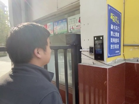 2020 年 11 月 10 日,雄安新區(qū)社區(qū)居民在智慧社區(qū)試點小區(qū)測溫進門