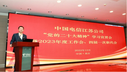 近期,江蘇公司召開黨的二十大精神學(xué)習(xí)宣貫會暨2023年度工作會、四屆一次職代會。大會深入學(xué)習(xí)貫徹黨的二十大精神,貫徹落實(shí)集團(tuán)公司2023年度工作會各項(xiàng)部署,總結(jié)江蘇公司2022年的主要成績、深入查擺存在不足,布置2023年工作任務(wù)。江蘇公司黨委書記講專題黨課、作了題為《全面深化云改數(shù)轉(zhuǎn) 加快建設(shè)一流企業(yè) 錨定健康可持續(xù)發(fā)展之路勇毅前行》的工作報(bào)告;領(lǐng)導(dǎo)班子其他成員就分管領(lǐng)域工作分別作出部署;黨委副書記作會議總結(jié)。